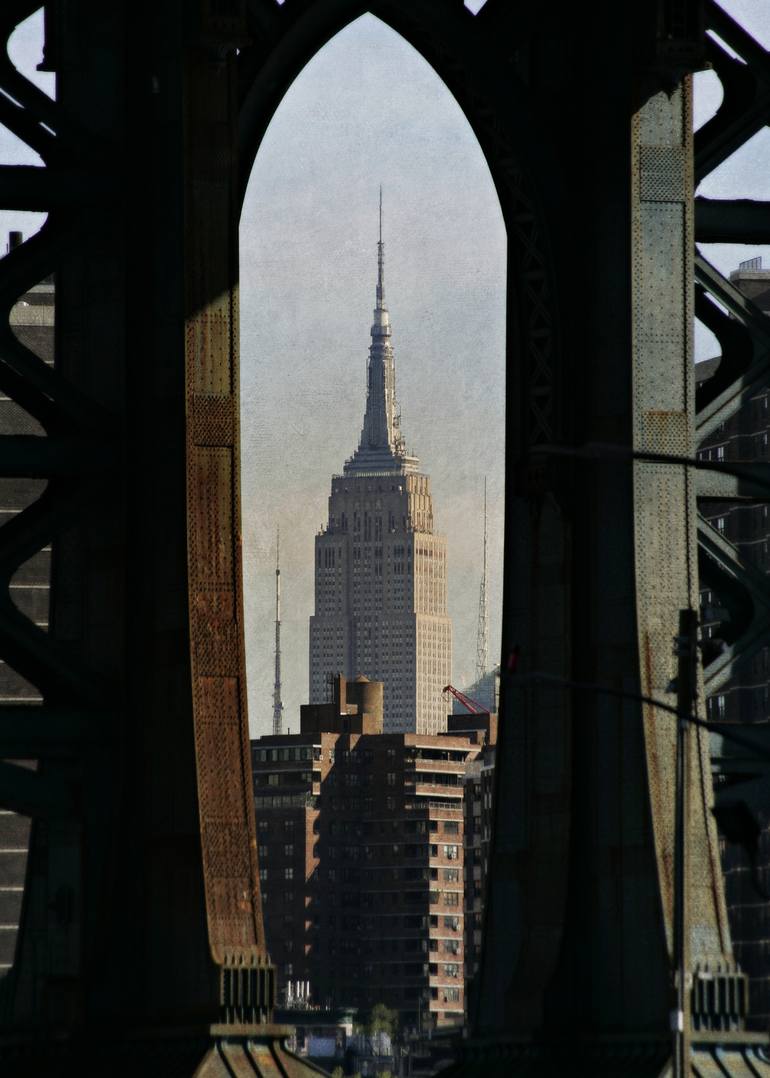 This is a close up view of a famous view looking at the Manhattan bridge from Brooklyn's DUMBO. Limited Edition Giclee Printed and signed by the artist (Edition of 25). Unframed on 315 gsm Smooth Fine Art archival Paper with 3 coats of satin varnish applied with a brush to create a painterly finish...