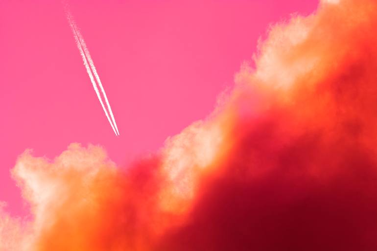 I saw a passenger jet leaving condensation trails in the sky overhead. It seemed so high and far, I imagined it was actually leaving the atmosphere and escaping planet Earth. I took a few shots of the jet, with the clouds intentionally dominating the frame, closing on the plane, creating an even str...
