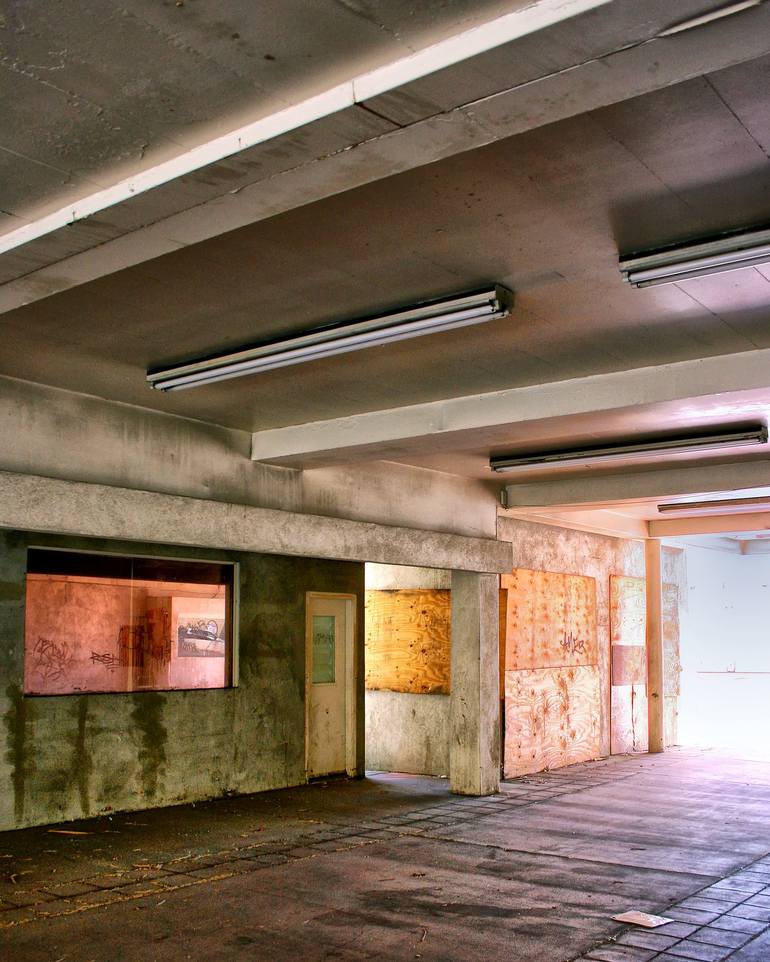 An overlooked and neglected parking garage at a local car dealership in downtown Palm Springs, California captured by photographer William Dey. "In the shadows of Paradise" Art Exhibition focuses on and documents the forgotten and overlooked areas and places in Palm Springs, California's "Paradise"....