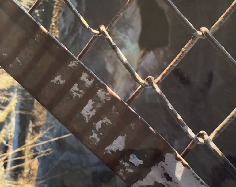 The fence protects a now abandoned copper mine. It shows the wear of being a part of an important yet destructive segment of life. A moment in time captured before it is gone forever. The photograph is printed on Metallic Paper.