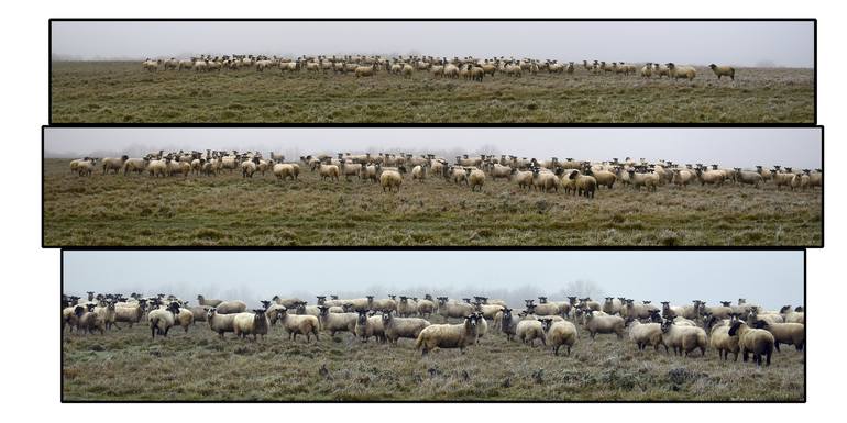Flock of sheep in a field in Northamptonshire in December 2020. I included all three panoramics of the sheep into one photo as there were no options to print the images seperately due to the panoramic sizing but I like how the three images are together on one image.