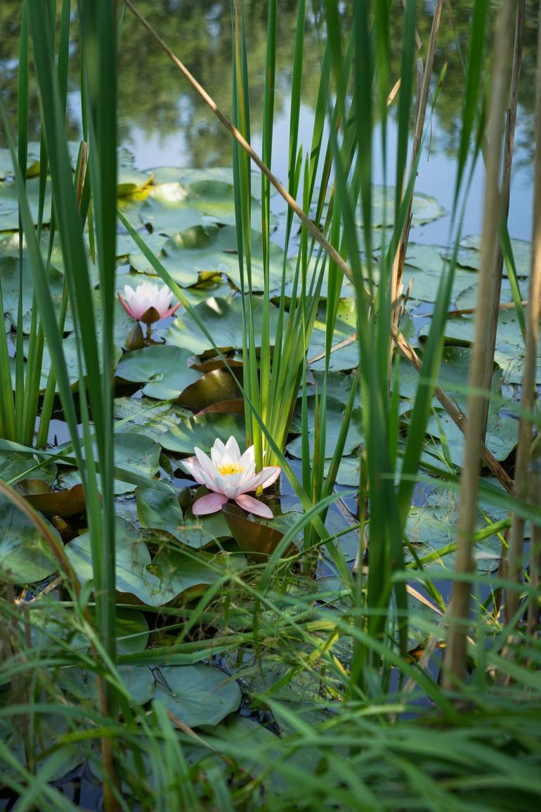 This photo is dedicated to the relaxing ambience at a small lake located at the edge of the forest. Pink water lilies and green leaves adorn the shore area. The treetops are reflected in the calm water. On warm summer days, lingering in the partial shade of the trees and near a body of water can be ...
