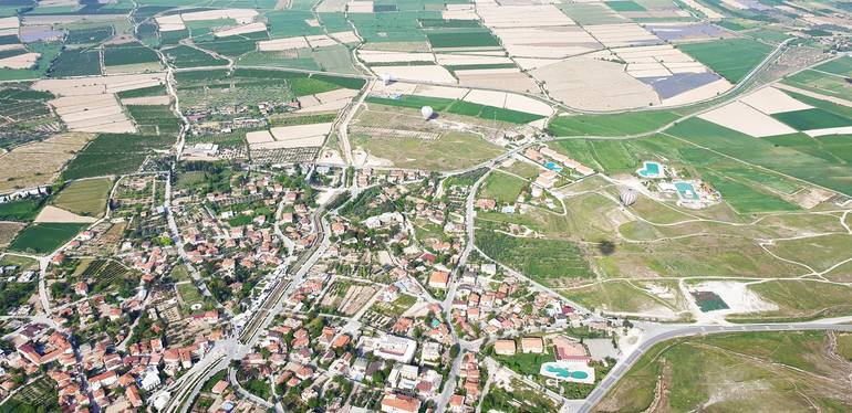 This picture was taken in April 2019, in a hot air balloon flying over Pamukkale, Turkey.