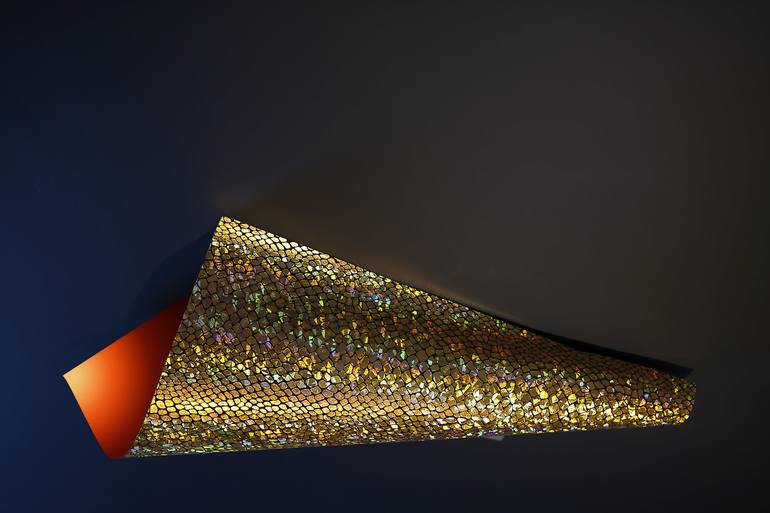 This artwork explores the tension between reality and perception, where light, glamour, and form intertwine. A golden, iridescent fold emerges from darkness, shimmering like a rolled fragment of another dimension. Created using new media techniques and reimagined from an old photograph, the piece t...