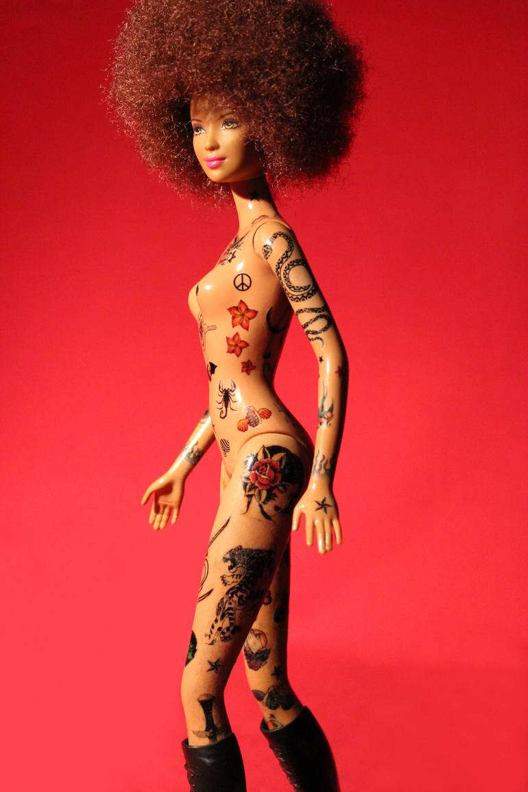 Foxy B On The Cat Walk, 300mm x 200mm, 2010. These are prints only, but I'm selling the dolls too, click on my collection and you'll see my Tattooed Barbie collections.