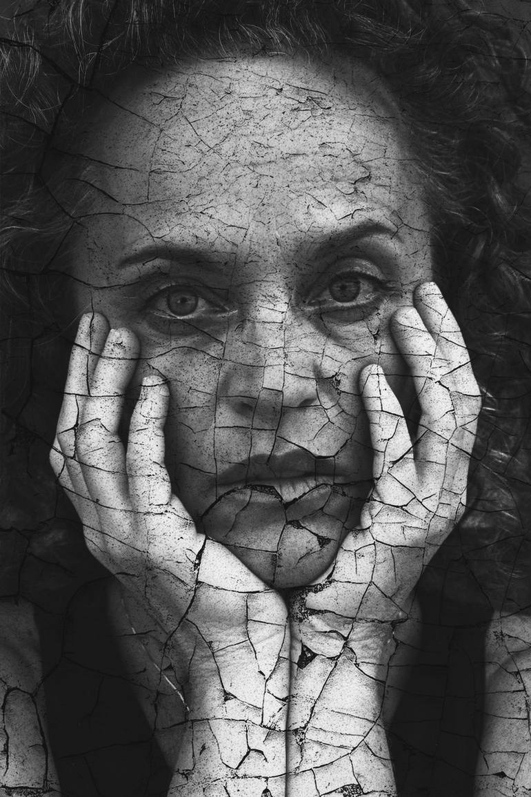 This conceptual black-and-white portrait explores the fragility of the human condition through the visual metaphor of cracked earth. The silent gaze of the subject contrasts with the fractured texture overlay, suggesting hidden pain, resilience, and transformation. A piece that challenges the viewer...