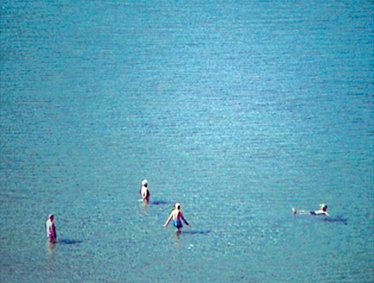 Videostill, Photo Print under Acrylic Glass. Inspiration was the moment. Two english couples prepare themselves to go for a swim. I had the chance to observe them from a roof. it all happened on the north side of corsica.