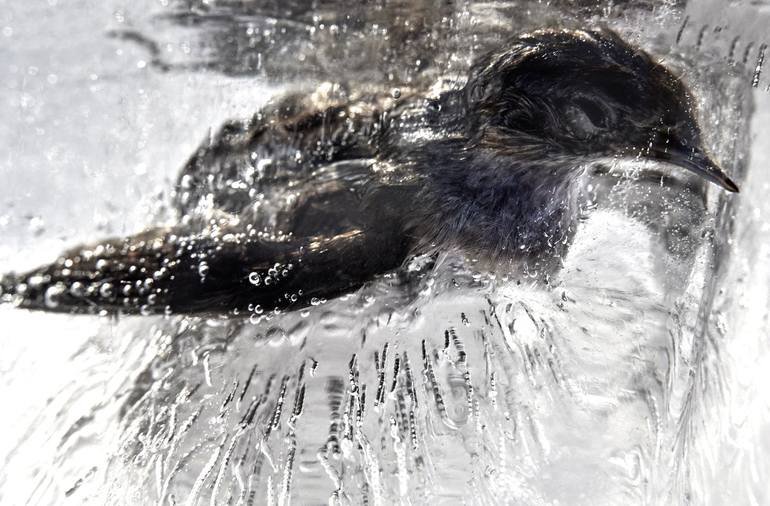 The picture is taken at my country estate in Värmland, Sweden I have collected deceased birds and insects I have found around our summer home in Sweden. They are frozen in ice and photographed in my wife's greenhouse, without artificial light. Between all the scary things and all the transient thing...