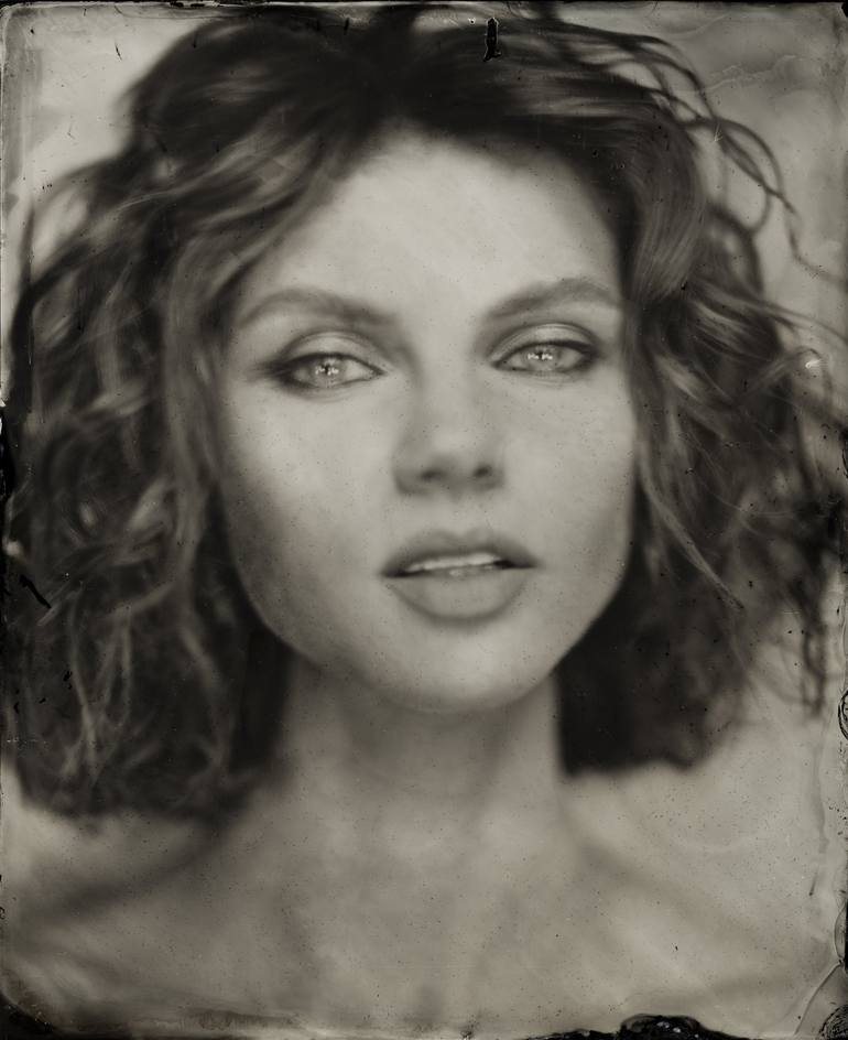This work is one of a series of mystical, meditative portraits and artistic nudes of beautiful actress Julia July. The image is made using 19th century authentic wet plate collodion technology with 8x10 inches camera on blackened silver plates. Pure sculptural beauty of women frozen with long exposu...