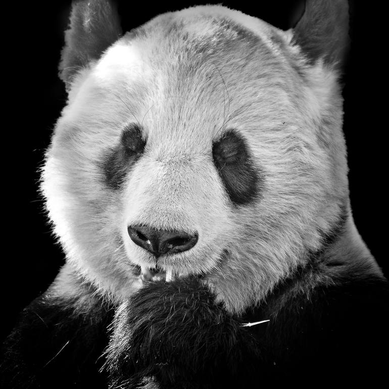 Monochrome fineart portrait of a Giant Panda from the collection "Animal faces" Photo print behind matte acrylic glass ArtBox made of aluminum, 25 mm profile depth, black 5 copies for sale and one artist copy Custom manufactured and individually autographed Collector's edition