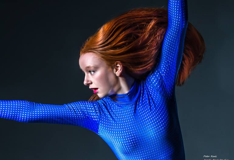 I was fascinated by the movement of dancers and the contrast of the woman's red hair and blue tights. I have tried to present a dynamic and flowing transition of form. Being a photographer it is presented in a print medium.