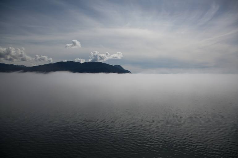 Morning view of Glacier Bay from the deck of a cruise ship heading to Alaska.