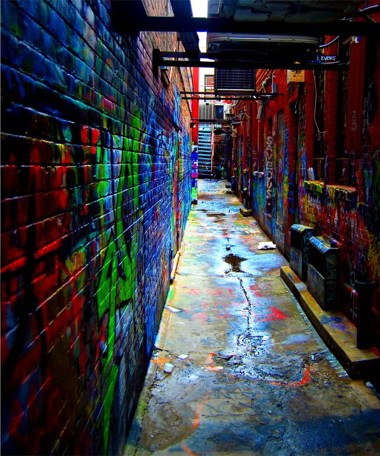 Title: Graffiti Alley, Ann Arbor Size: 30 x 45 inches Medium: Photography (Limited Edition of 10) Finish: Archival pigment print on heavyweight giclée paper (Somerset Velvet) Description: Ann Arbor’s Graffiti Alley is a place that never holds still—painted and repainted by thousands of hands, voice...
