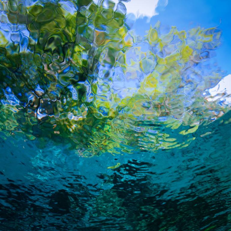 After years of diving underwater, I kept being attracted to the constant play of colors of the undersurface refraction. This custom printed Inkjet series celebrates that enjoyment and awh, a soothing, calm sensation. Each image is unique and unrepeatable. Prints are available in multiple sizes by re...