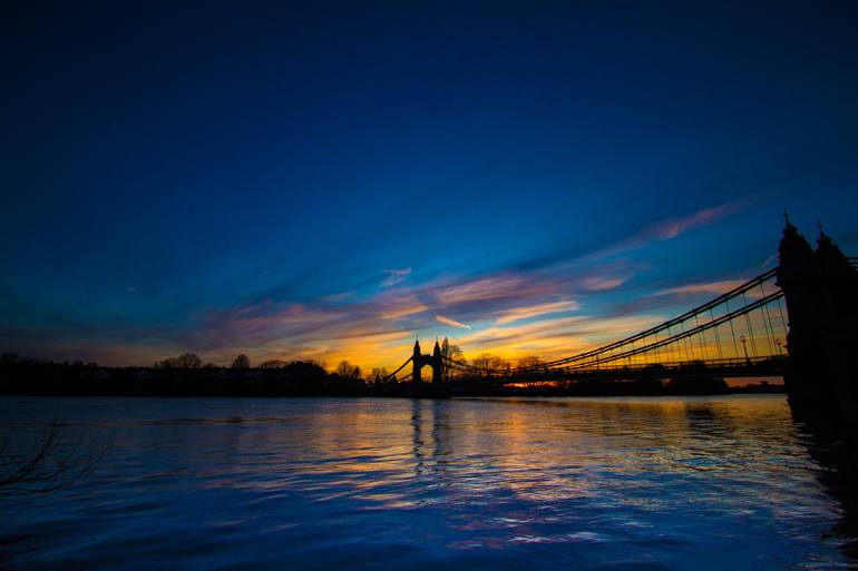 Sunset in Hammersmith West London Iconic Hammersmith Bridge London England Europe