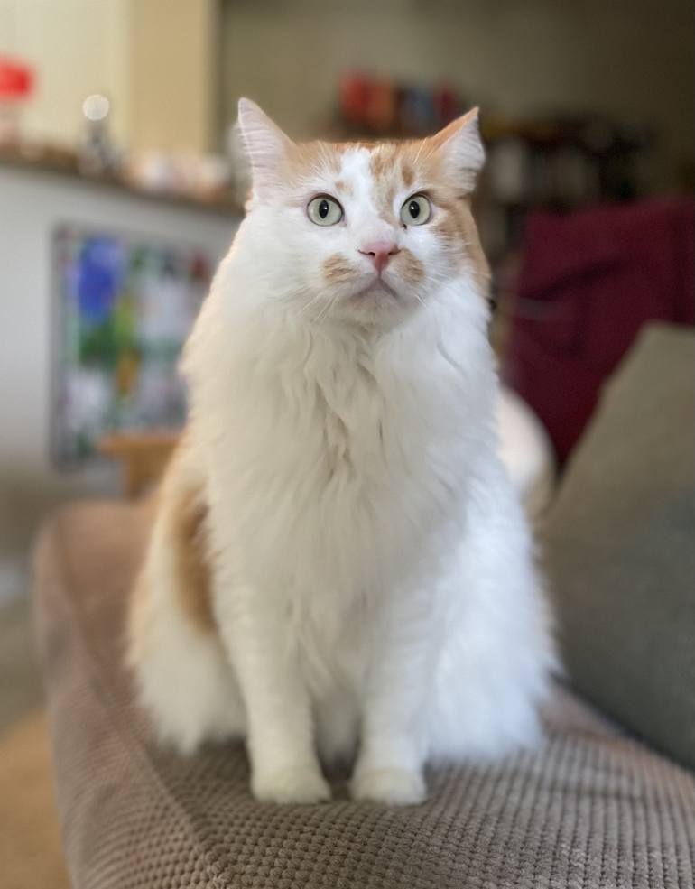 It is a very ordinary day in my life. The orange cat on the red couch looks at me like I have a ticking bomb on the top of my head. I boil water, and the cat keeps looking over my head, like something is there. Finally, I put my hands up over my head to where the cat is looking so fixedly. To my sur...