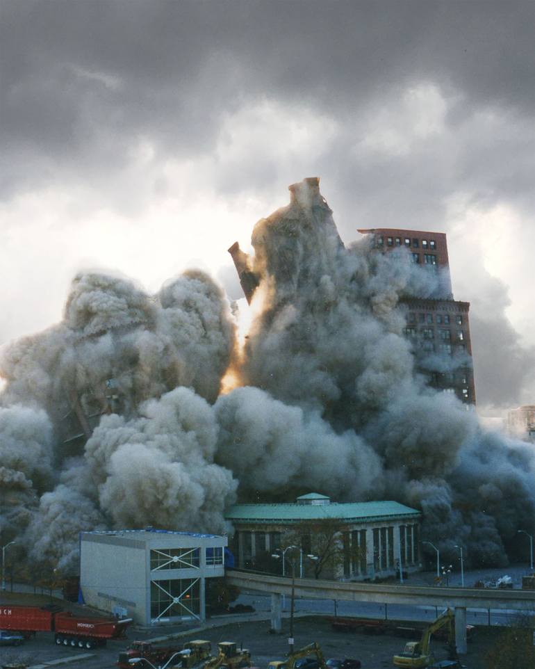 A documentation, consisting of 5 consecutive photos depicting the demolition of a definitive Detroit landmark. The Hudson's building on Woodward Avenue. A bittersweet, nostalgic moment separating Detroit's past from its future.