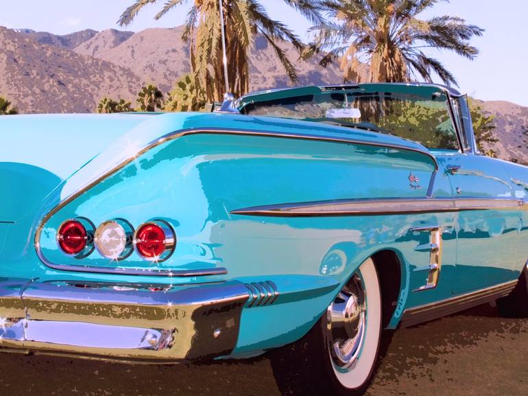 The popular classic Impala and it's iconic details, photographed by William Dey. "Retro Vision" Art Exhibition Satellite Show Archangel Collective Art Gallery Palm Springs, CA. Image is printed on white matte Picture Rag museum-quality paper and measures 20"W X 15"H with additional white borders for...