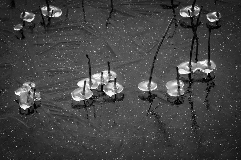 The power of silence—the deep cold of winter created these fascinating structures. They were built by water freezing, thawing, and freezing again. I love the fine scattering of snow on the dark ice of the lake looking like stars. The full tonal range favored by 20th century photographers like Edward...
