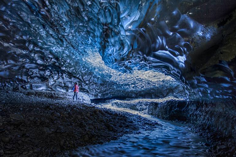 Melting icelandic glaciers are changing their surface and shapes very fast. There are creating ice caves inside the glaciers due to melting waters in the summer season. This image was taken inside almost 300 ms deep cave in 2017.