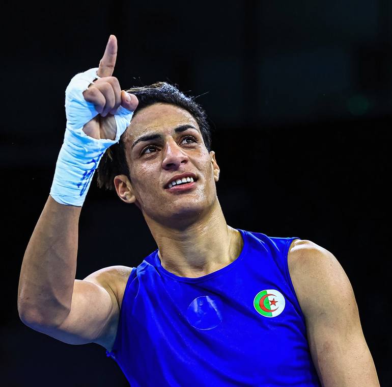 Algerian female boxer, Imane Khelif, winner of Olympic gold 2024 in Paris-FRANCE after gender row controversy. - Print material: Matte Paper - Image size: 24" x 24" ( 60cm x 60cm) - Frame: None - Shipping packaging: Rolled in a tube