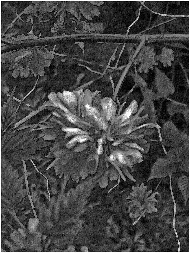 A digitally reinvented image of a flower in a NYC garden setting.