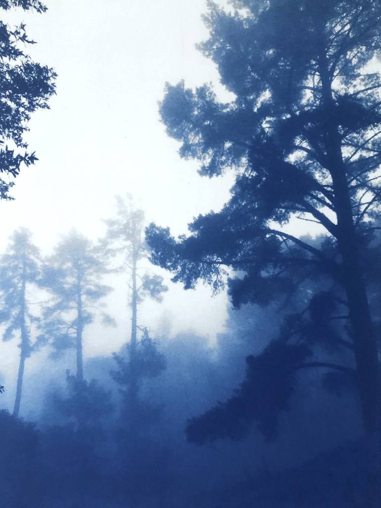 This 24 inch size is the largest of all my foggy forest hand-printed photographs using the cyanotype process from the 1800s. It is the same image by the same name I have printed in smaller studies, but a larger format using a much larger negative derived from the same photo. All of my hand-print...