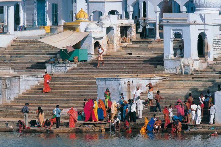 Indian washing his linen in waters of the Ganges in India