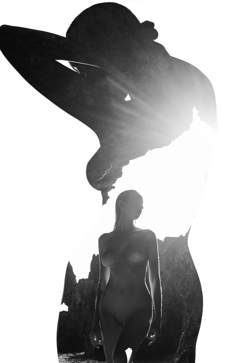Superposition of two photos one on another. Each of us has our own cave inside where we hide our true selves.