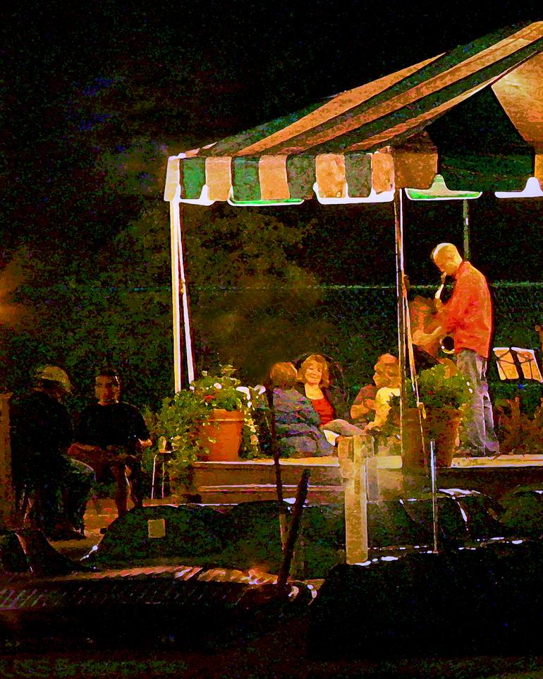 Photograph taken at the Boathouse in Forest Park in St. Louis, MO, USA at night after the "Balloon Glow". This was then converted using software to a painterly effect reminiscent of the impressionist era paintings in Europe. Wood framed & matted behind anti-reflection museum glass.