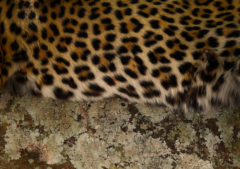 Looking close enough the textures of the natural world are endless. Although it is normally the front part of a leopard that provides photographic inspiration, a leopard's print is just beautiful. I think the contrast here between the mesmeric coat and the heavily lichened branch of the sausage tr...