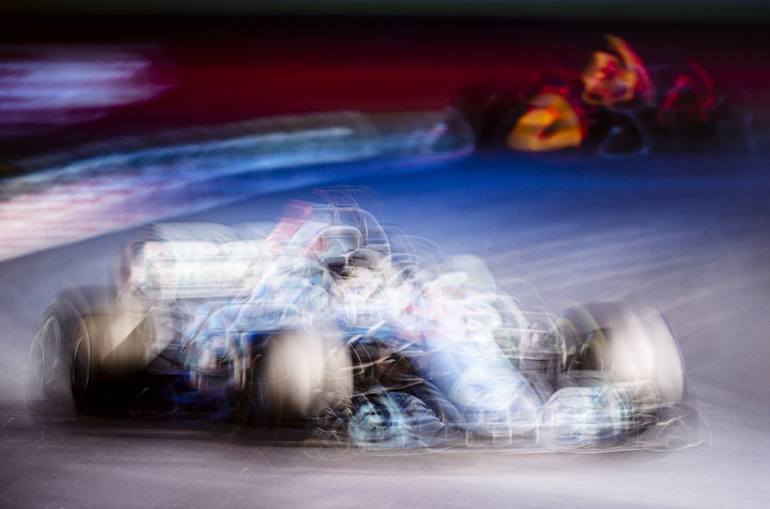 Photography: Color, Photo on Paper. Photography Color Digital on Hahnemühle Baryta FineArt 325 g/m².. Photograph of Lewis Hamilton driving the Mercedes AMG F1 W09 EQ Power+. The image was taken at the Circuit of Catalunya during the 2018 winter test days. Printed on on Hahnemühle Baryta FineArt 325 ...