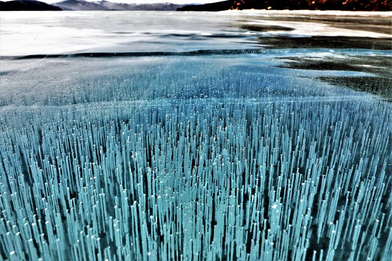 The photo was taken by Canon 5d Mark 4 without a tripod and flash. Lake Baikal. Winter. Ice. Russia