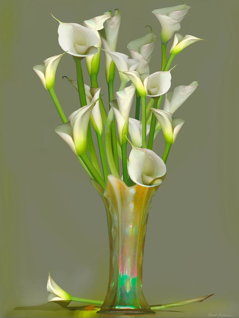 “Lilies in gold vase” is an arrangement of scanned individual flowers and vase using a desktop scanner and arranged digitally. The relatively shallow space is suggestive of icons or bas relief. An inherent beauty of flowers, is augmented by the bright pop of Contemporary color and sometimes accompan...