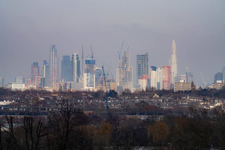Telephoto lens view of central London taken from Wimbledon village several miles away