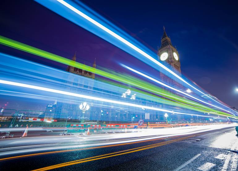 Night photography workshop in London famous place Big Ben local traffic at night England Europe