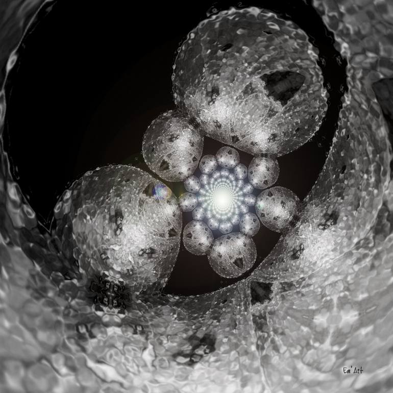 And what if multiverses were reals and we exist inside of them? Abstract and surreal fractal digital art inspired and made from a macrophotography of a snail, size 40 x 40 cm (15.75 x 15.75 inches), on high quality photo paper. #1/10 original photography in limited edition to 10. Numbered and sign...