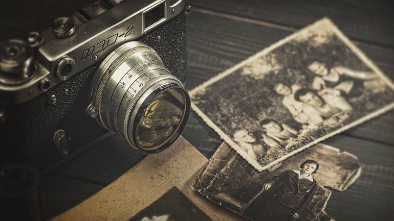 I'm photographer with more than 30 years experience. The vintage photo camera from that photo, is my first camera. My dad presented his own equipment to my 14th birthday... Few photos on the desk are from my family archive.