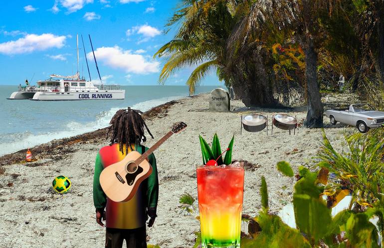 Having visited Jamaica several times and loving Reggae Music, I used my imagination, AI and other items to create this collage of Marley's icon music and favorite things including a guitar, steel drums, BMW, colorful cocktail, three little birds, buffalo soldier, the sheriff's tombstone, soccer, joi...