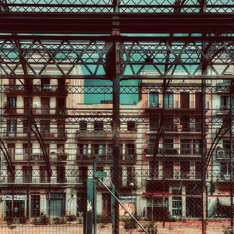 This picture of constructions of the old market was taken in Gracia district in Barcelona, Spain
