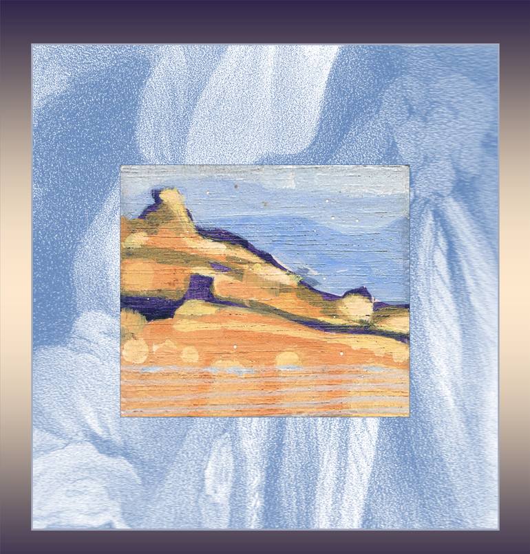 Miniature landscape (1.1H x 1.5W) / acrylic painting on wood. © Mirthe Sleper / Remastered 2015: 'Wear your landscapes with dignity'. Wall after: 'Litho 1848 by Thomas Fairland - Printed by M & N HanHart'. --- Limited Edition 1/5. ‘Miniature Landscapes /Being There Nr.18’ - Art print on gloss plexi...
