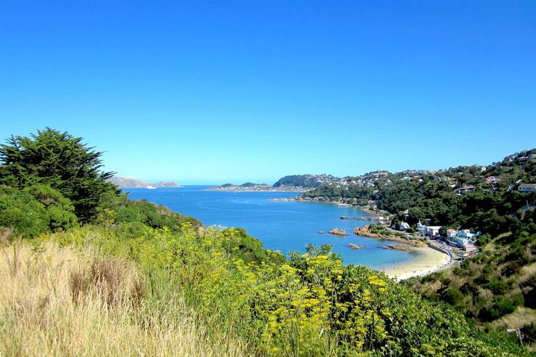 View from the old Military Fortification, Fort Ballance in Miramar, Wellington Overlooking Mahanga Bay. This was a 20 minute walk / hike from my flat in Miramar. I would go there via a tiny woodland trail up over a hill that connected the neighborhoods. Not too far from famed WETA studios.
