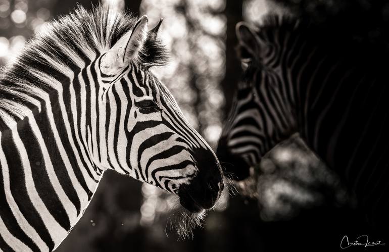 2 zebras in the wild as we could see them as in a mirror ! It is one of my exclusive Fine Art picture, printed exclusively on Aluminium (Chromaluxe) The process of Chromaluxe is called dye sublimation, and it allows for the rendering of exact details and brilliant colors with excellent durability T...