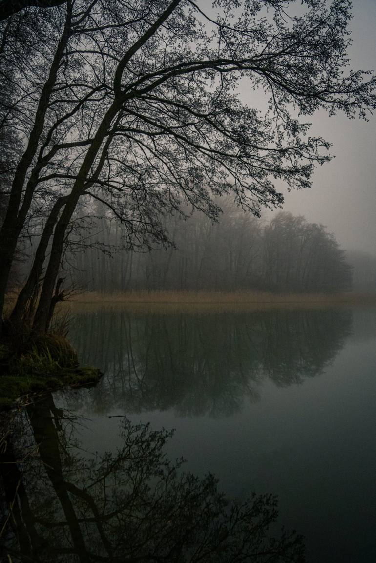 In this photograph, a lone figure stands at the edge of a still lake, their presence mirrored perfectly in the glassy surface. The scene feels suspended in time, a moment of inward pause, where the outside world quiets to reveal something more intimate. Taken during a quiet exploration of a lakesid...