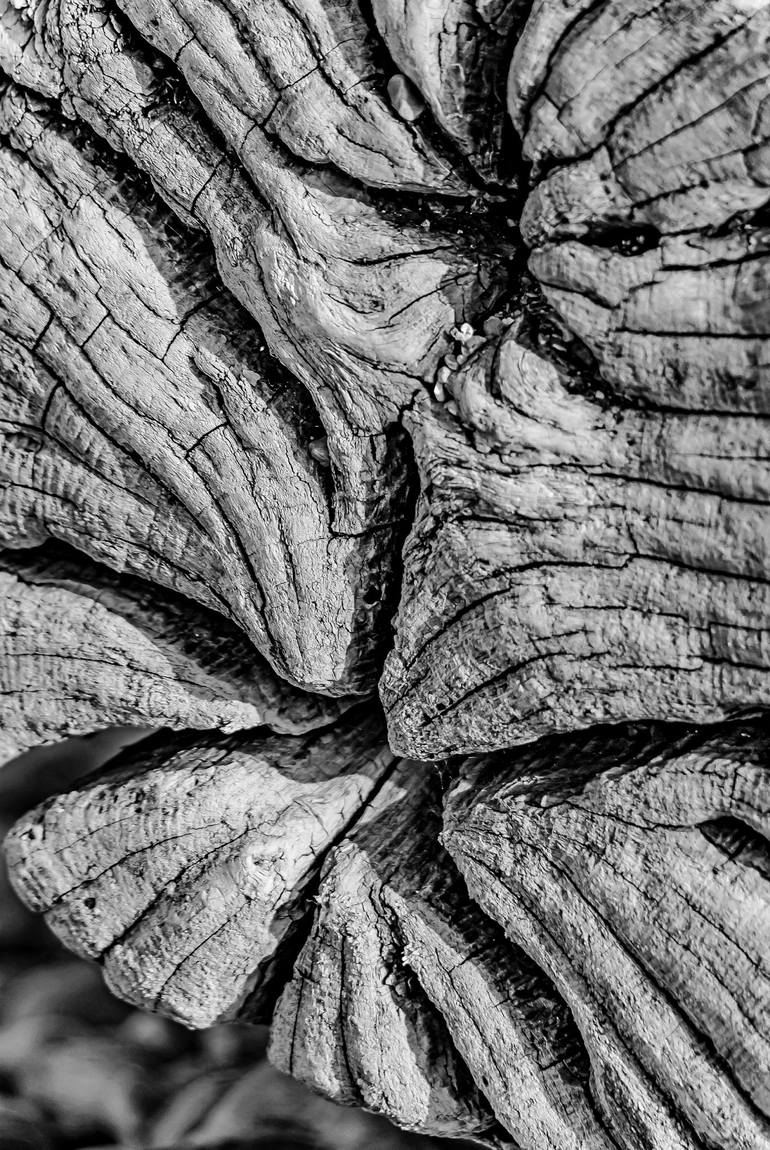This black and white photograph, "Monochrome macro wood # 21", offers a modern and abstract perspective on nature. The close-up shot captures the intricate details of weathered wood, transforming a familiar subject into a study of texture and form. The monochrome palette enhances the organic feel, h...