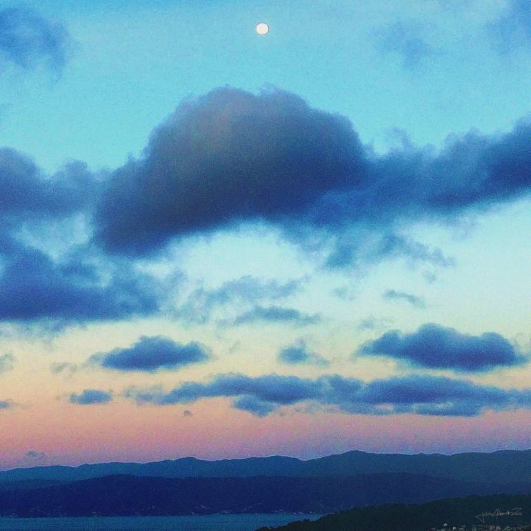 It's a homage to the beauty of New Zealand (Aotearoa) specifically Wellington (Port Nicholson) harbor taken at dusk and feel it's "iconic" in the sense that it is a "typical" example of Wellington's beauty -incorporating the silhouetted landscape of the hills, the clouds, -the Antediluvian moon -and...