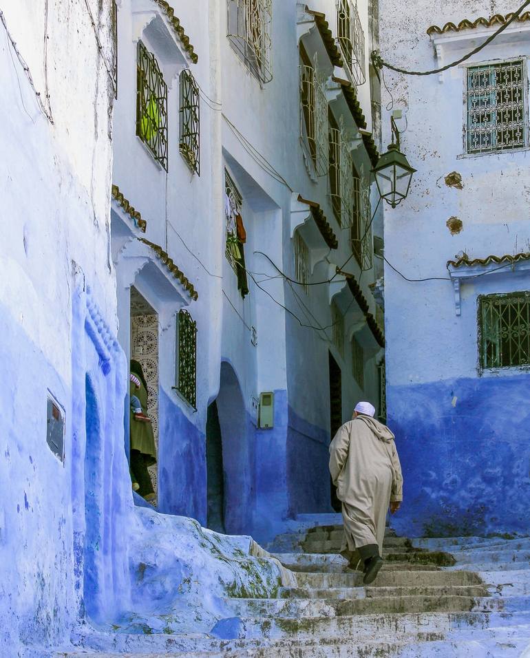 A Walk in the Blue Chefchaouen, Morocco, North Africa A 2-hour rough local bus ride from Tangier through the stunning Riff Mountains with a crazy Moroccan driver, sees you reaching the beautifully captivating Chefchaouen - the Blue City. Serenity overcomes anyone that enters. Many theories includi...