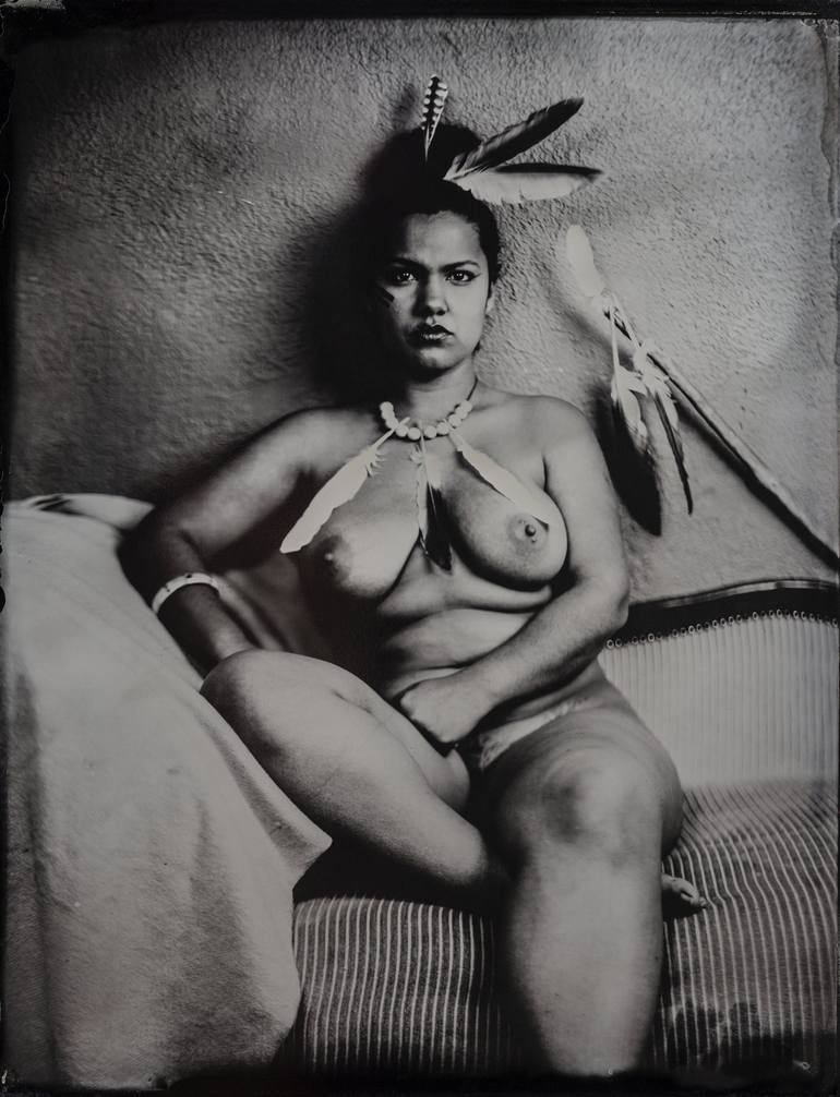 Nude portrait of Meg. This is an 8.5"x6.5" Tintype, made on anodised aluminium using the Wet Plate Collodion method of the mid 1800's. This is the original Plate and not a copy or print. The plate is then framed [framed size 16.75"x14"x1.25"] - in a white frame, floating with a generous border and o...