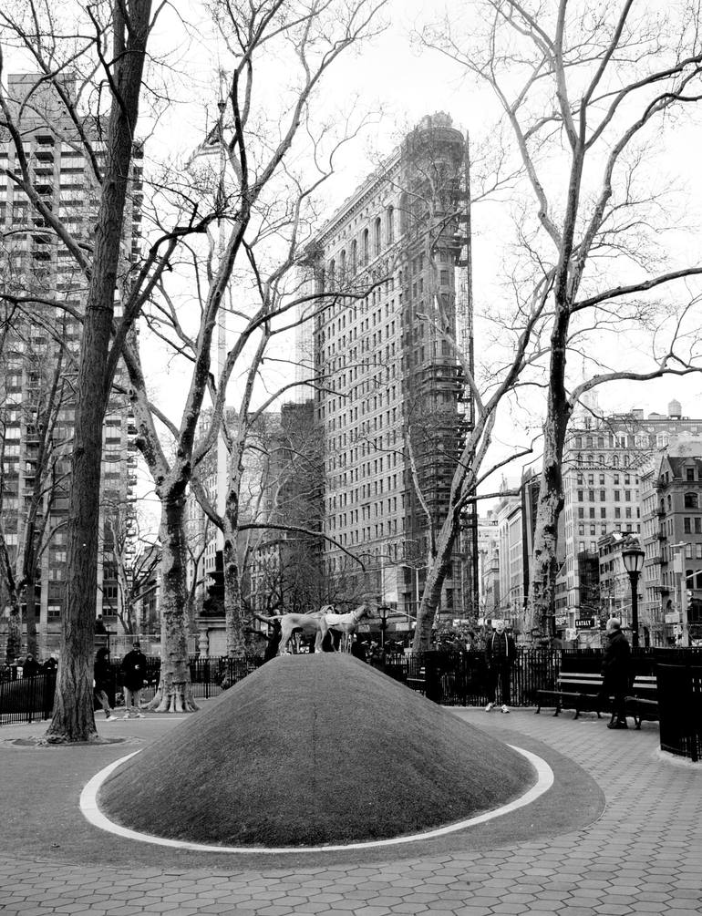 In this black and white photograph , I sought to capture the essence of an urban encounter, where the grandeur of the iconic Flatiron Building meets the organic vitality of city life. The composition frames two dogs engaging happily at the foreground, symbolizing a connection amidst the urban land...