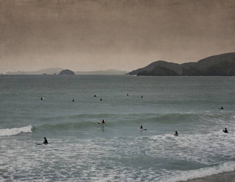 Surfers at Newgale beach, Pembrokeshire, Wales, U.K. Limited Edition Giclee Printed and signed by the artist (Edition of 25). Unframed on 315 gsm Smooth Fine Art archival Paper.